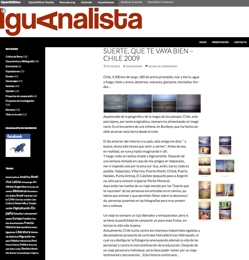 // Automne 2011 // : Publication, « Suerte ! Que te vaya bien ! », revue en ligne Iguanalista, pour l’exposition au El Chicho, Bordeaux